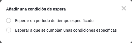 A continuación te tocará definir si vas a establecer un período de tiempo de espera en concreto (en minutos, horas, días, semanas, meses o años) o si vas a elegir que el suscriptor se quede ahí parado hasta que cumpla con unas condiciones determinadas.
