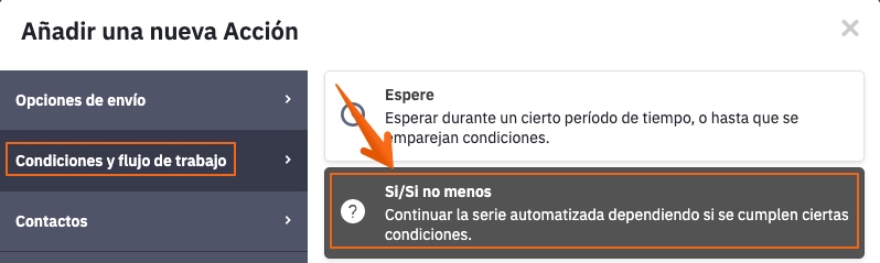 También puedes establecer que el suscriptor no siga avanzando hasta que cumpla con una condición determinada: haber hecho clic en un enlace, haber visitado una página en concreto, etc.