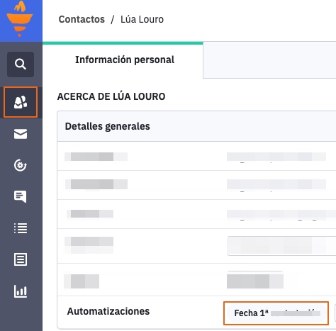 En ocasiones puede interesarnos ver cuál ha sido el recorrido de un suscriptor en concreto en una automatización determinada. Para ello, entraremos en su perfil desde el apartado Contactos y haremos clic encima de la automatización que queremos supervisar. Sobre el esquema de ese pequeño funnel veremos checks por los pasos que sí ha realizado el lead, y cruces en aquellos que se ha saltado.