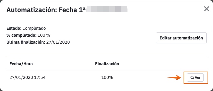 En la siguiente pantalla que te aparecerá con el listado de todas las automatizaciones por las que ha pasado ese lead, pulsa en “Ver” en la que te interese analizar.