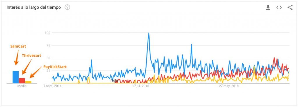 - Thrivecart. Una opción perfecta relación calidad precio. No se publicitan y se encuentran en la sombra del marketing pero su imagen es inconfundible. Soporta múltiples opciones de pago hasta Apple Pay. Y su precio a largo plazo más económico que el resto de opciones porque el coste de la herramienta lo pagas una sola vez y la tienes para siempre.