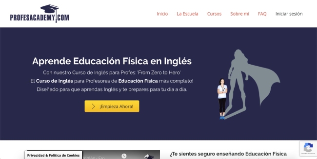 Sitio de membresías dirigido a enseñar educación física en inglés para profesores. Hay tres cursos (tres membresías) disponibles:
