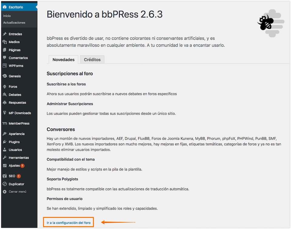 03. Salvar los ajustes de bbPress. ya tenemos lista nuestra web para crear un foro.