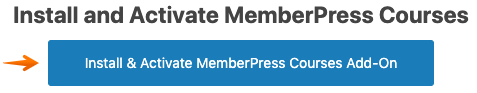 Dirígete a MemberPress > Courses y pulsa en el botón azul que dice “Install & Activate MemberPress Courses Add-On“