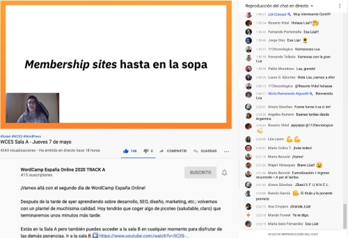 A pesar de que mi charla estaba pregrabada (gracias Fernando por ponerle las cartelas) y que lo único que tenía que hacer ese día era atender a las preguntas del chat de YouTube y en la sala de Zoom, estuve muy nerviosa.