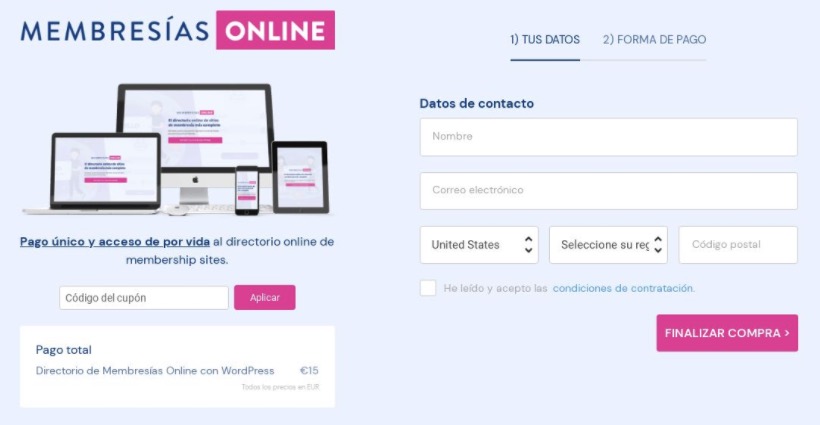 Es el carrito que utilizamos para vender el directorio de membership sites, Membresías Online. Puedes importarlo haciendo uso de esta URL: https://thrivecart.com/share/8rdhkGY/