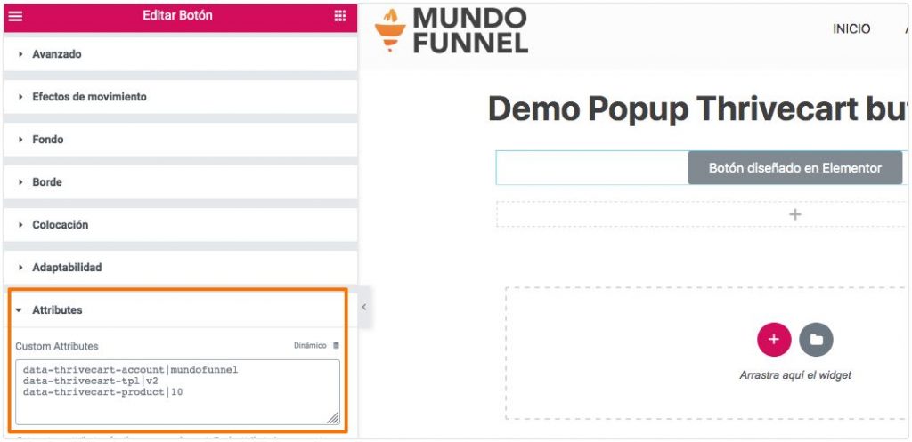02. Integración avanzada. Si lo que quieres es “disparar” el popup Thrivecart con un botón creado con Elementor, los pasos son un poco más largos y debes seguirlos en el siguiente orden: