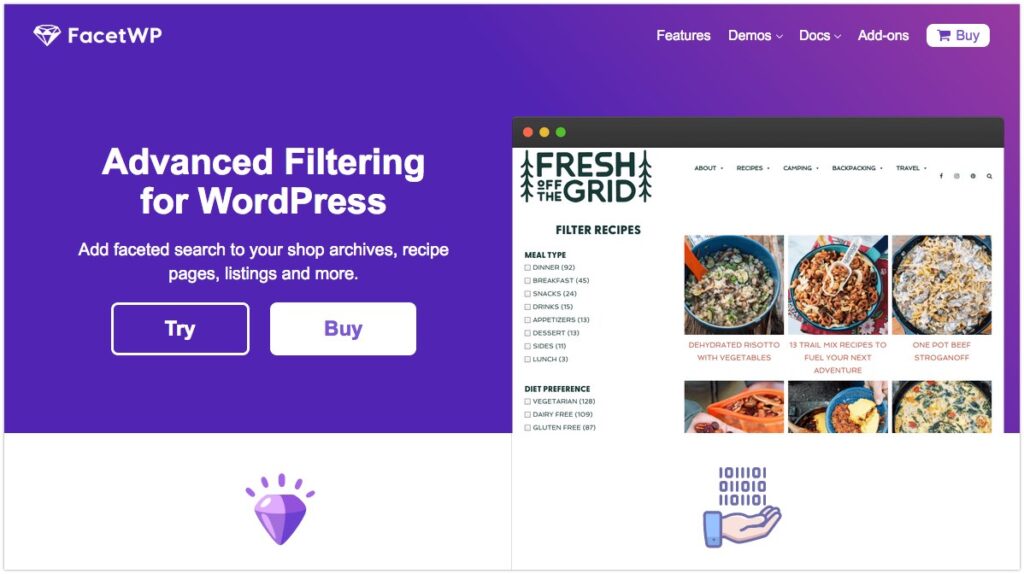 FacetWP es un plugin para WordPress que te permite crear filtros de búsqueda avanzados para los contenidos creados en tu sitio web. Pueden ser entradas – posts – o cualquier otro tipo de contenido personalizado – CPT –
